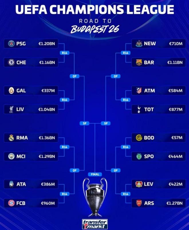 这是欧冠改制后的第二次淘汰赛抽签。由于采用瑞士轮赛制,本次抽签不存在回避原则,且直接划分上下半区。因此,这次抽签不仅决定了16强战的对阵,也为后续的整个晋级路径埋下了伏笔。