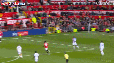 第4分钟,约罗盯人不紧,拉克鲁瓦角球头球顶进死角,水晶宫1-0领先曼联